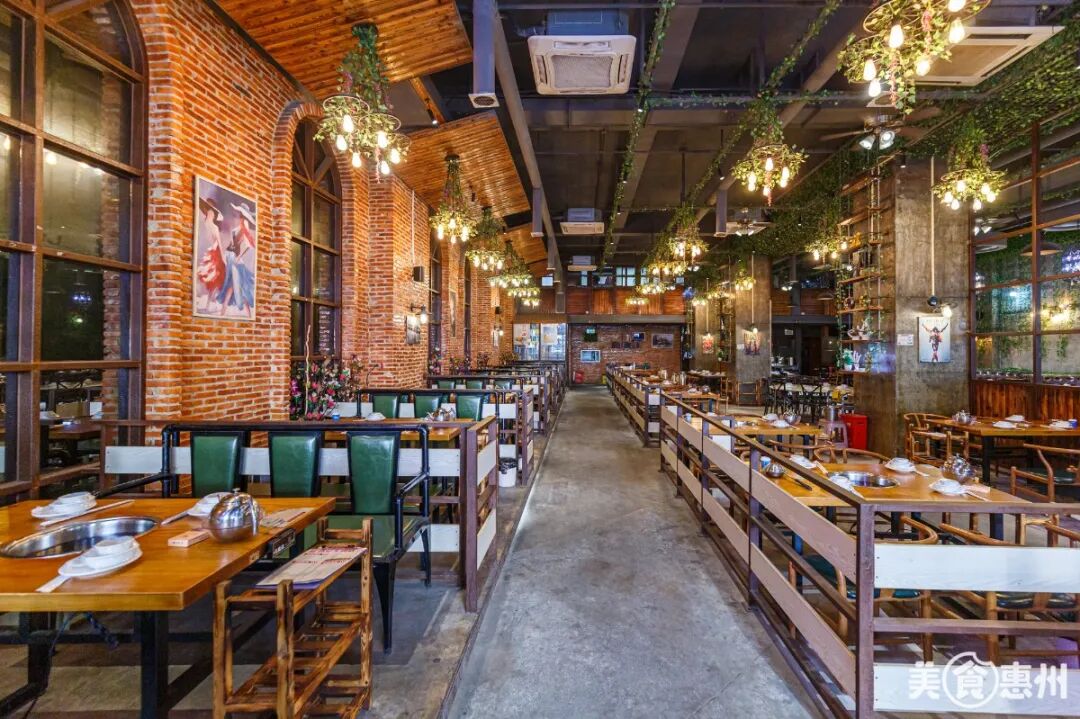 进门左侧的拱形木窗很是特色,灯饰以及墙上都融入了绿植的元素,加之店内挑高+工业风的设计,让人刚走进店里就会有种进入了古堡的错觉。
