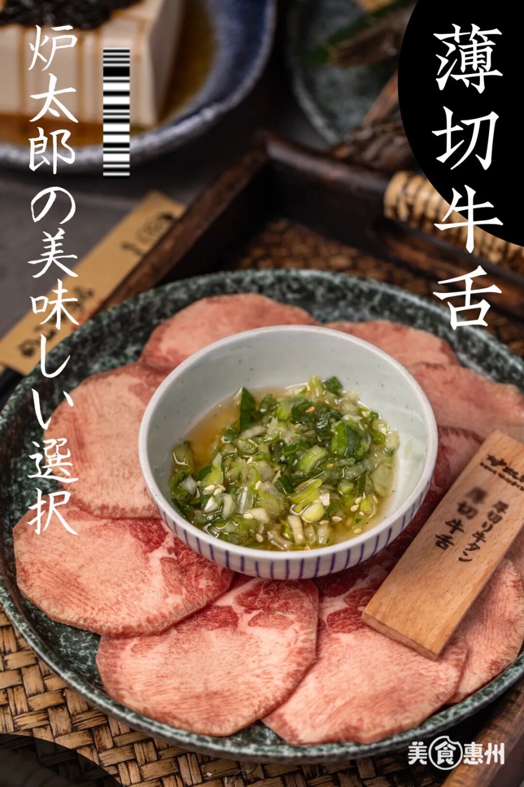 日式烧肉的烹饪方法让牛舌柔嫩脆韧、滋滋冒油,用这种烤制的方法,能够锁住肉汁,让牛舌口感更加香嫩多汁,整个牛舌看起来金灿灿的,让人非常有食欲。