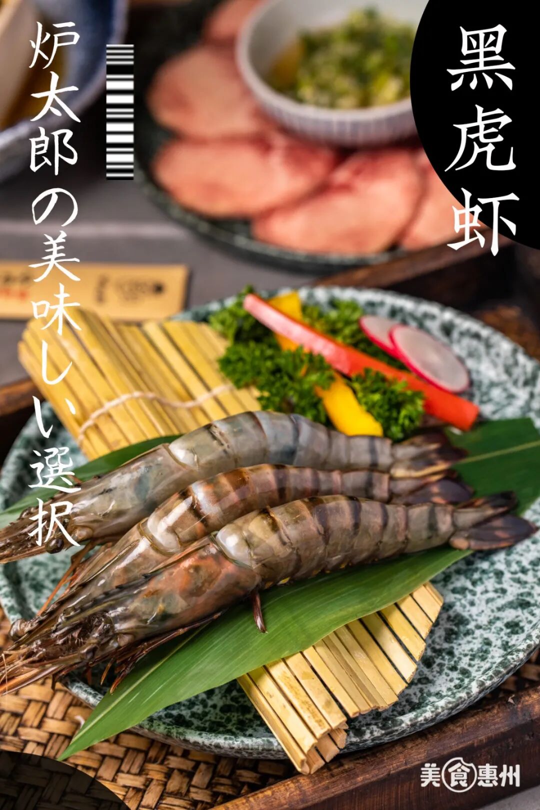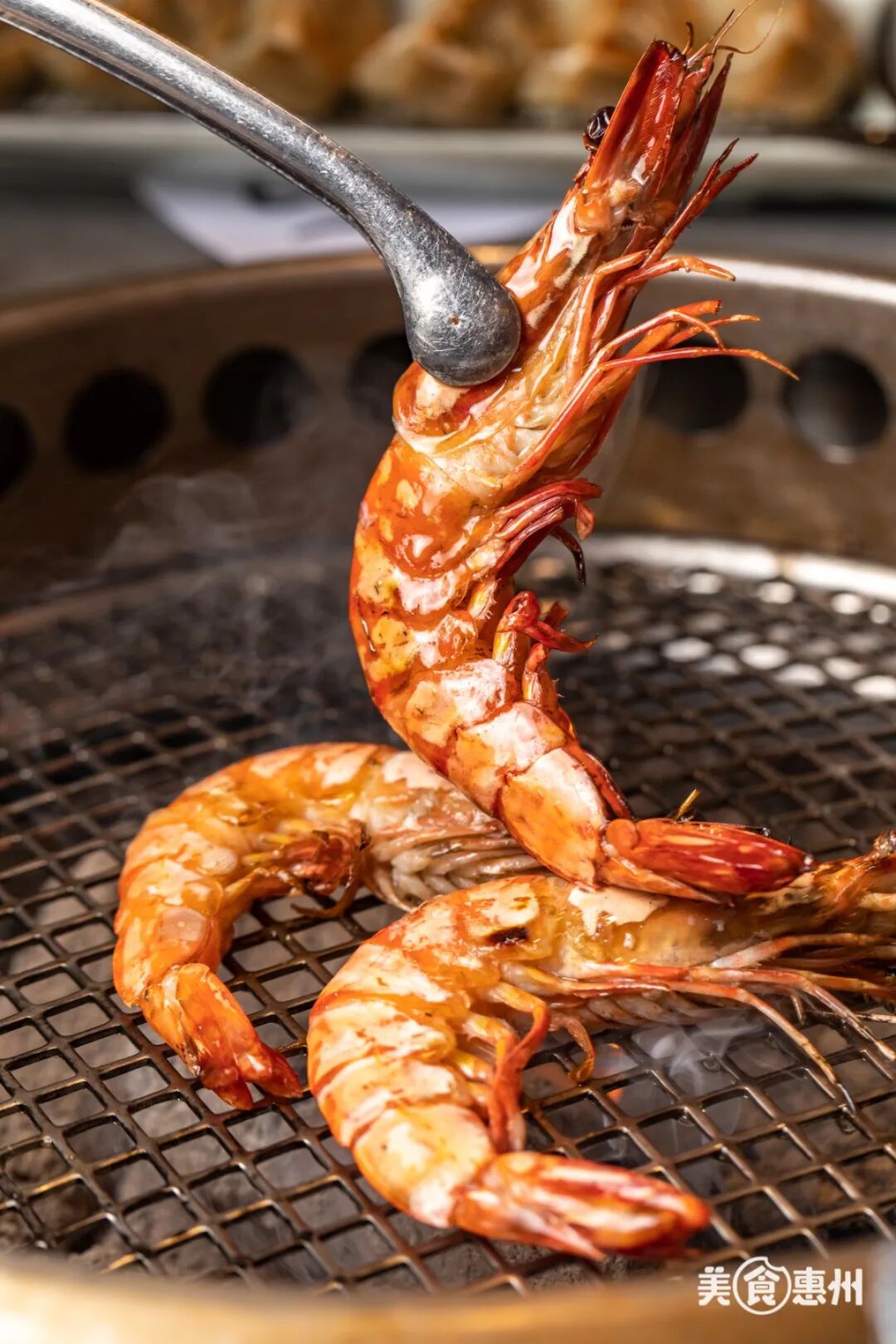 新鲜的黑虎虾一端上来就吸引了我的视线,每只黑虎虾个头足,肉质饱满鲜甜。不同于我们惯常的蒸制与炒制。在烤炉上明火烤制过的虾有独特的焦香,独占鲜与香。