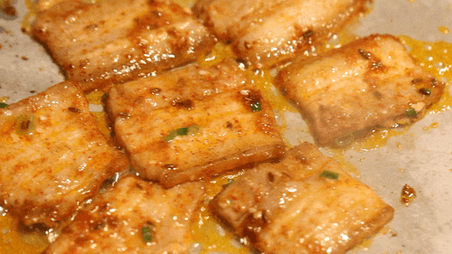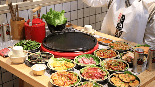 将腌制后的五花肉一片片放入烤盘,看着店内特意配备的“安佳黄油”与烤肉慢慢混合在一起,在炉内发出“滋滋”的声响。扑鼻而来的是肉类烤制后的香气与腌料的热辣,在等待中也充满了幸福感!