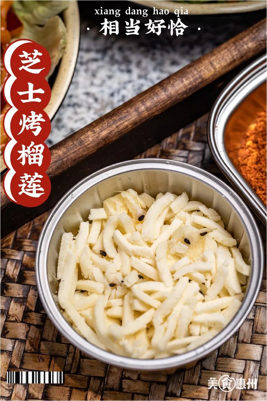 想不到吧,酒拾这家烤肉店还有甜食,店内浓香甜蜜的芝士烤榴莲吃过后根本停不下来。烤炉上的芝士慢慢受热融化,舀起还能拉丝,看着就十分治愈