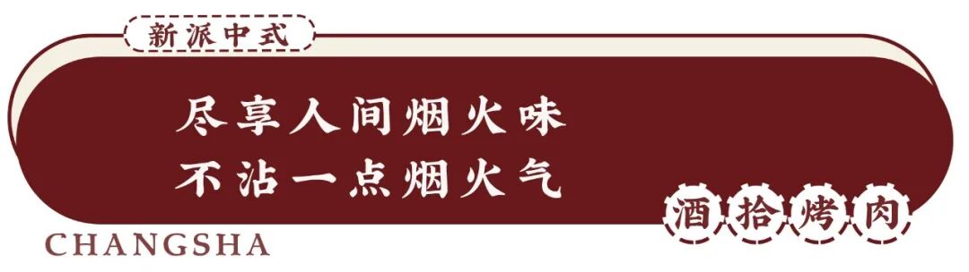 酒拾烤肉店内为新派中式风装修格,在简约文艺的基础上格外清爽。店内除了格子与中式元素外,最多的就是诗句墙饰,在一众烤肉店内独具标识。