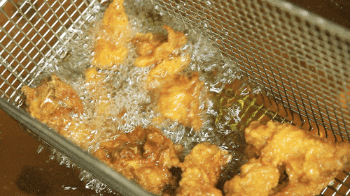 新鲜鸡肉,手工裹粉现炸。随着热油与鸡肉的不断碰击,香味也弥漫着整个空间。刚出锅的炸鸡,无疑是最具杀伤力了!