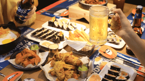 炸鸡与啤酒可以说是绝配,一口酥脆的韩式炸鸡,一大口冰凉带气儿啤酒,酱香和浓郁麦香随着气泡在舌尖翻滚,有着让你停不下来的魔力。