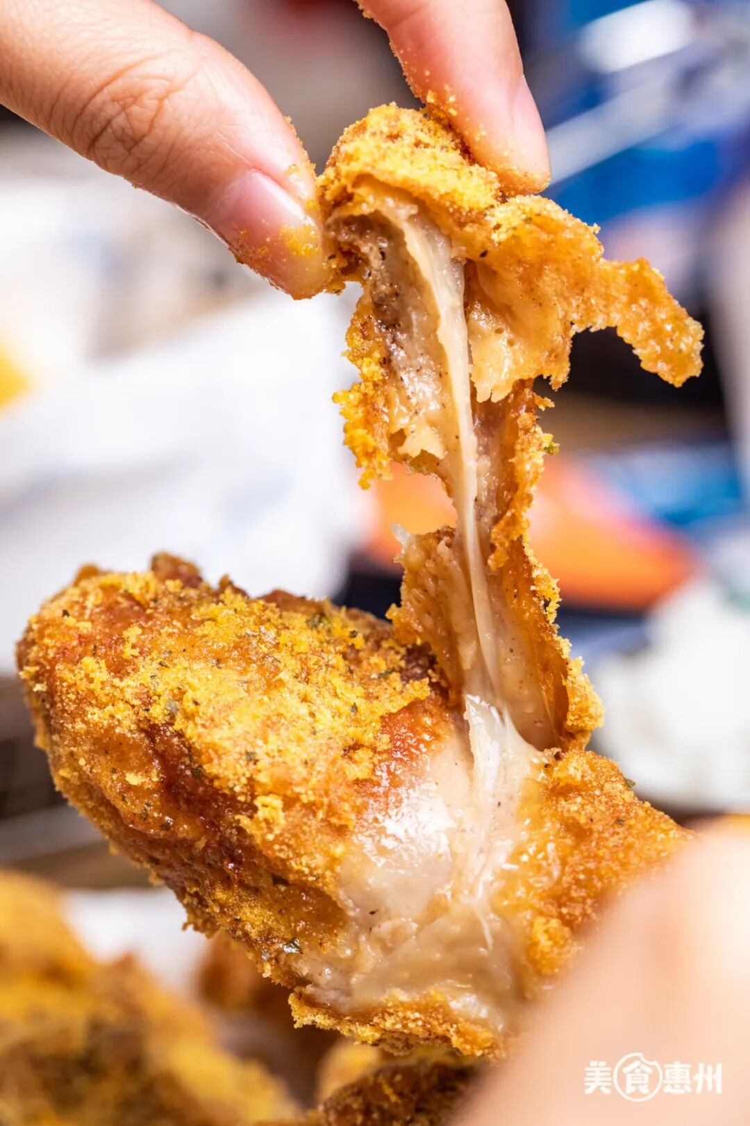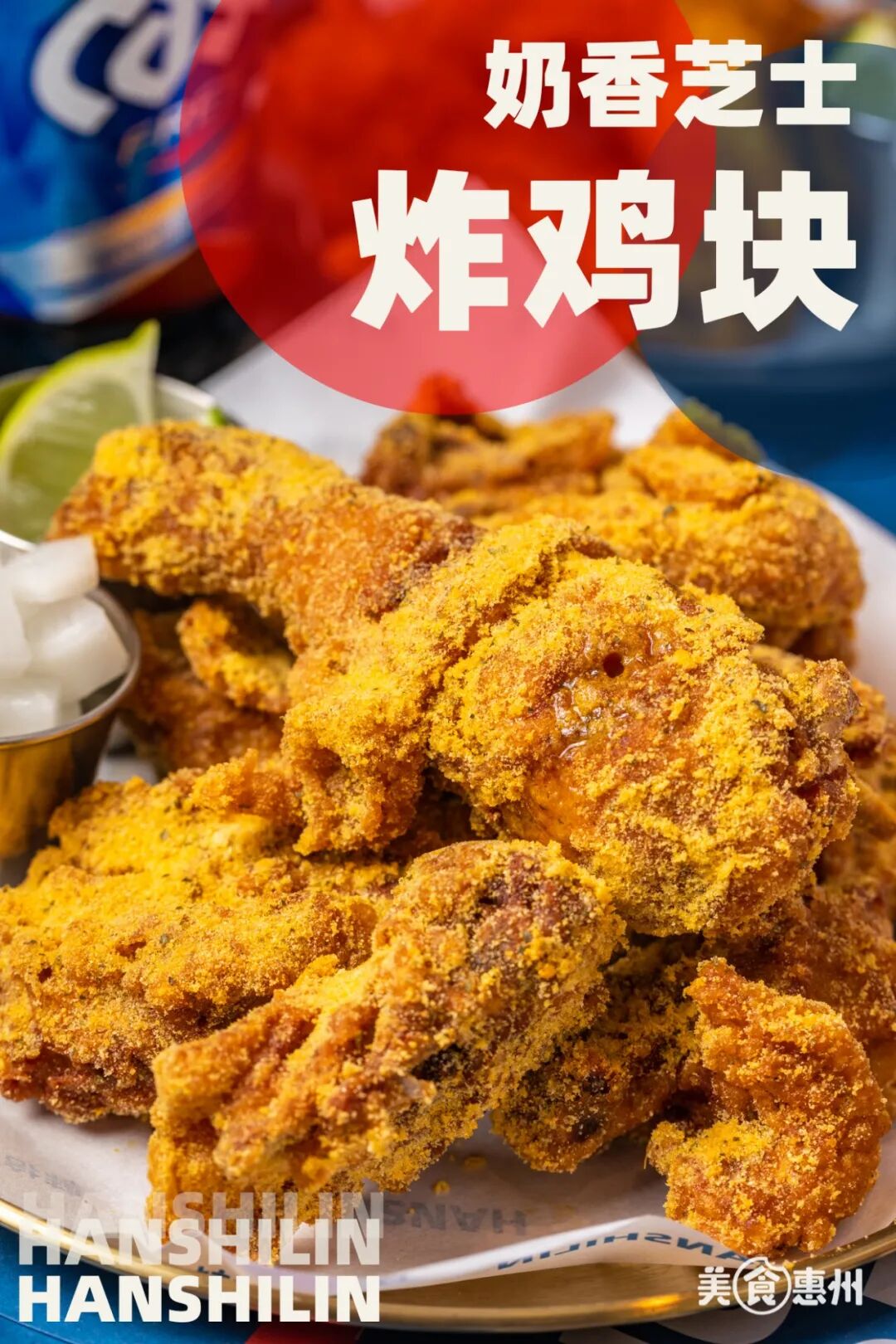 芝士就是力量!这满满一大份的芝士炸鸡块,绝对是芝士控们的福音。芝士的咸香味也已悄悄爬上舌尖,让味觉系统开始兴奋。