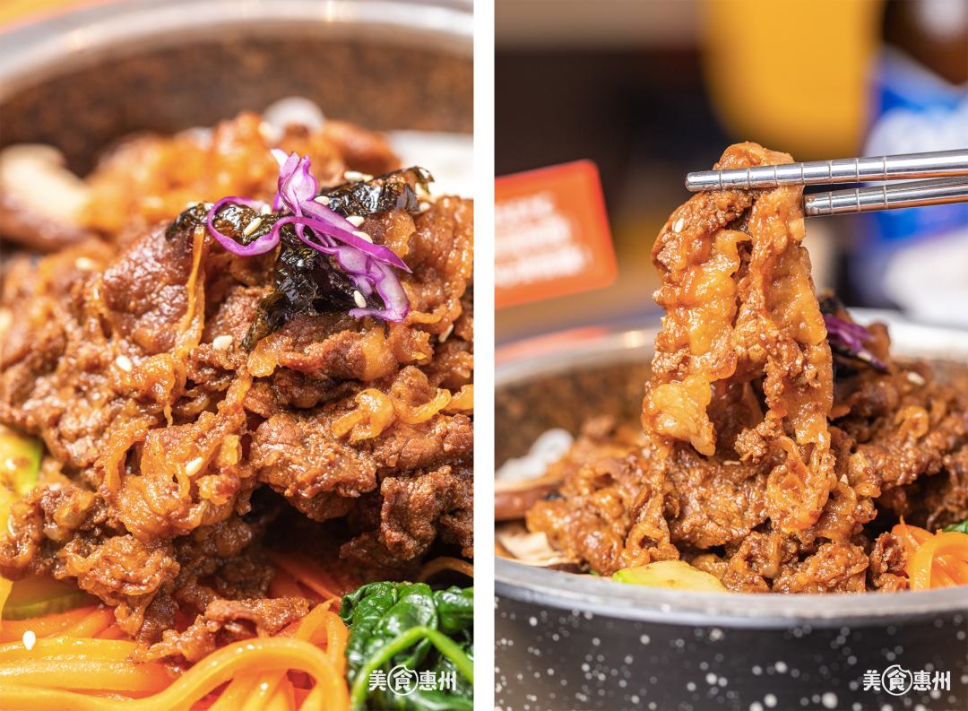 月销100000+份的「烤牛肉石锅拌饭」是店内妥妥的销量之王。石锅拌饭讲究的就是趁热上桌,腾腾的蒸汽和滋滋滋的声响,一下子就把我的胃口打开了!