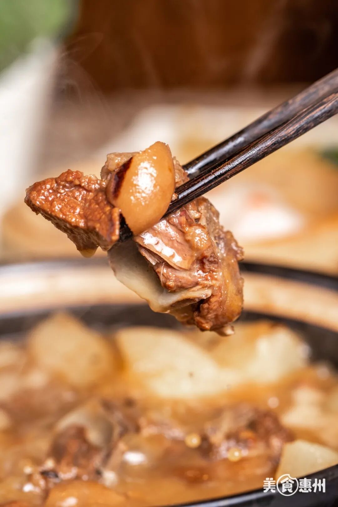 经过焖煮的羊肉皮质爽口弹牙,肉质肥瘦相间、萝卜绵软清甜,带着温度的菜肴一入口就温暖了我们,熨帖了我们肠胃。