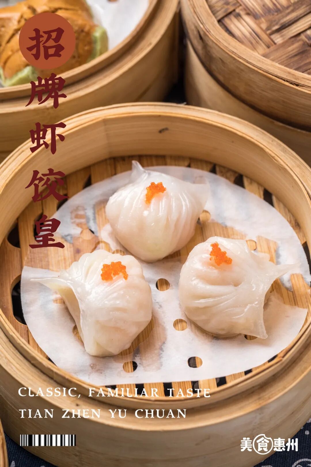 虾饺可以说是必不可少的茶点之一,天甄的虾饺全部由师傅手工制成。从馅料到最后出锅,全部把控在熟练的人工下,味道当然可以保证!