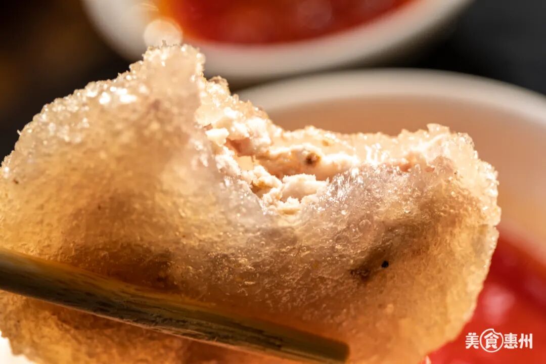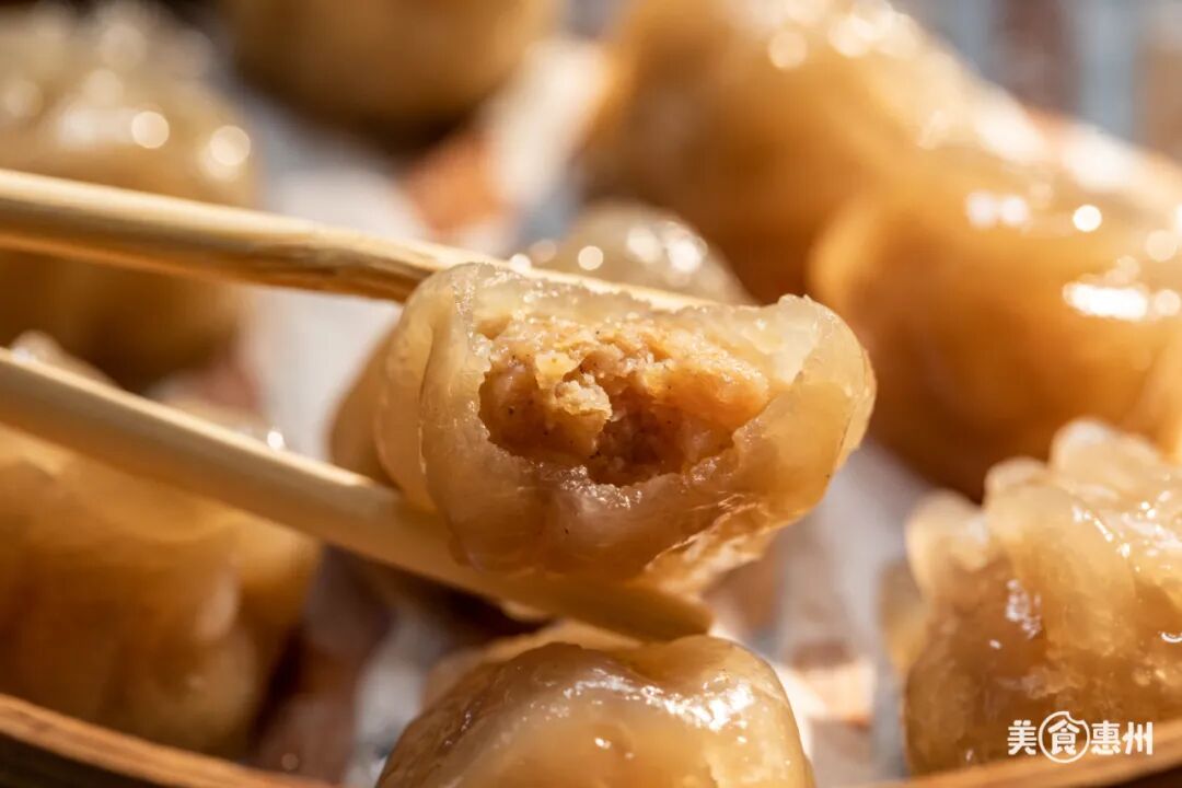 外表长得有点像mini版的虾饺,一层皮里包着剁碎的猪肉馅,外面那层皮是用番薯粉做的软软糯糯,很有嚼劲。
