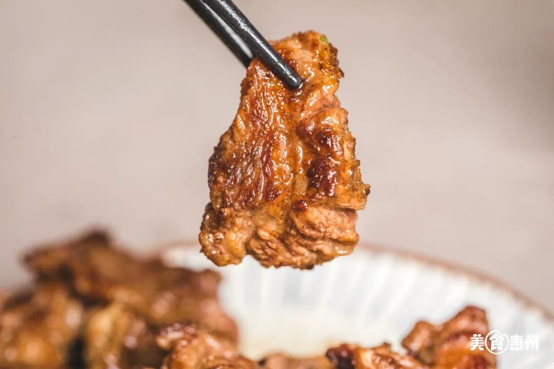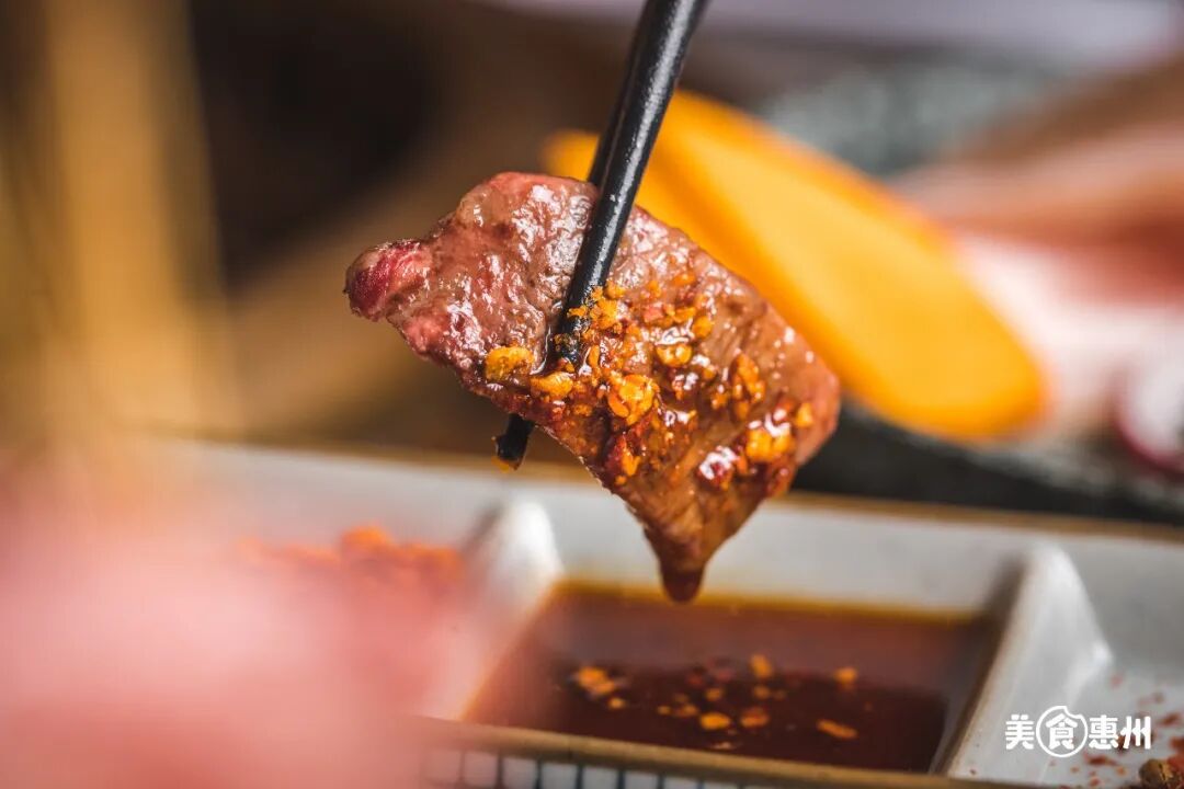 蘸上店内特调的酱汁再食用,甜甜的酱汁中散发出牛肉的鲜美,食肉者最爱的吃法就是一口怼落去。