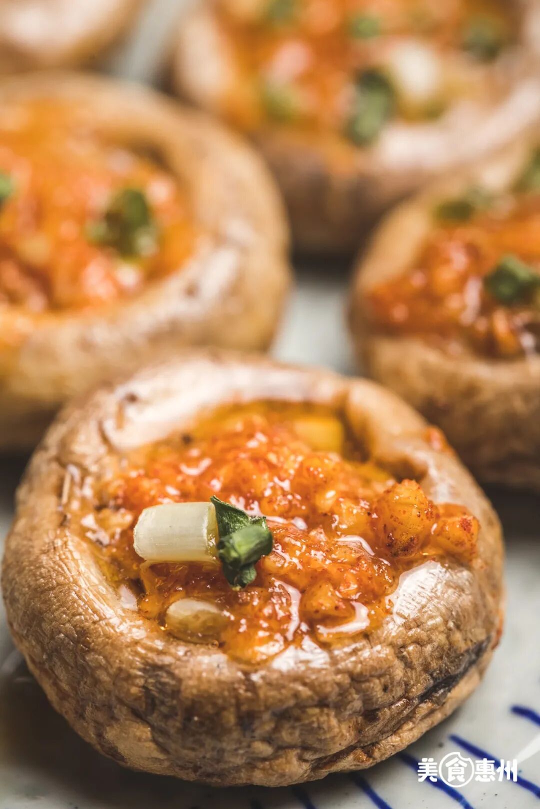 口蘑里面填满了蒜蓉的香葱,增添的蘑菇的鲜美,吃起来口口爆汁,必须推荐!