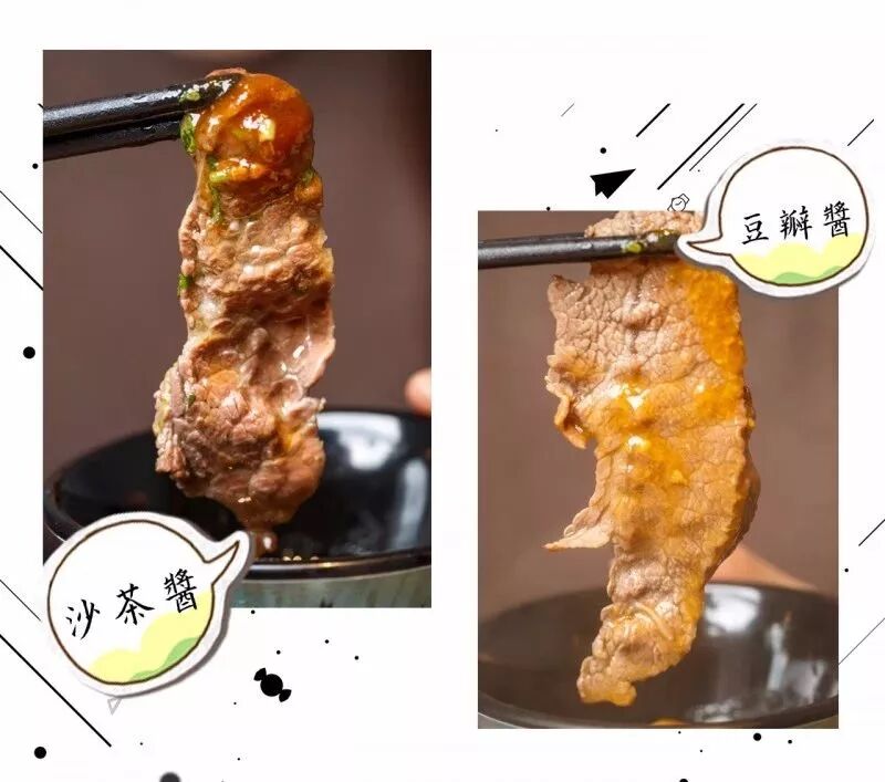 无论是蘸传统的沙茶酱还是鲜甜的豆瓣酱,都很美味。