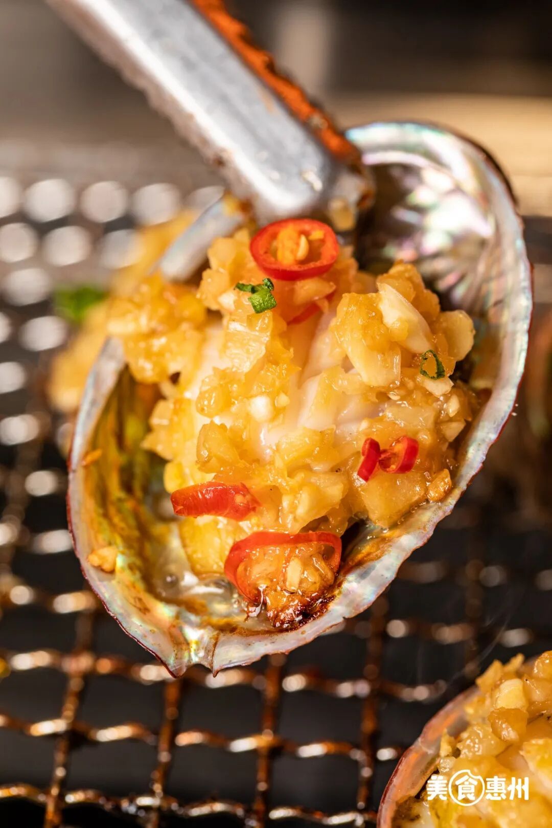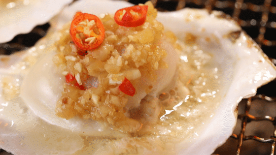 元贝鲜嫩多汁的汁水被烤盘的高温逼出