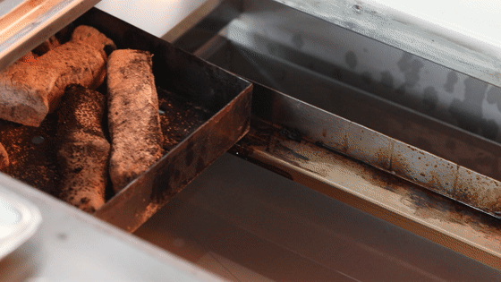 看着油脂在烤盘上被逼仄出来