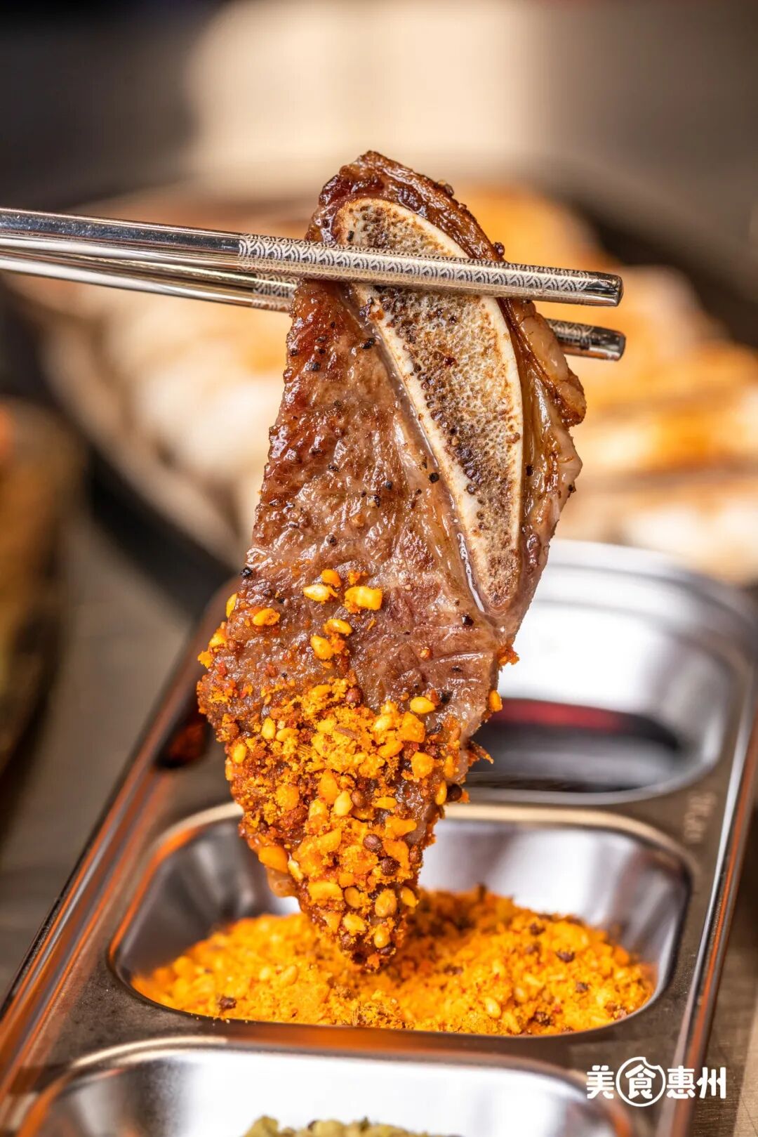 牛肉粒裹上一圈的蘸料
