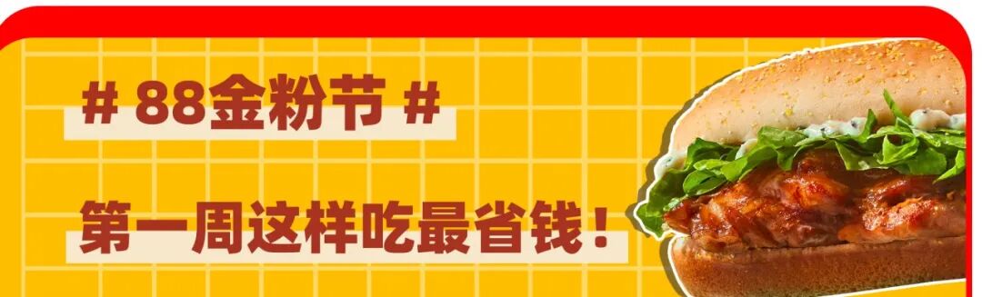 今年的「88金粉节」周一到周日都有一个主题:周一汉堡日,周二甜品日,周三套餐日,周四小食日,周五四件套日,周六周日分享日。