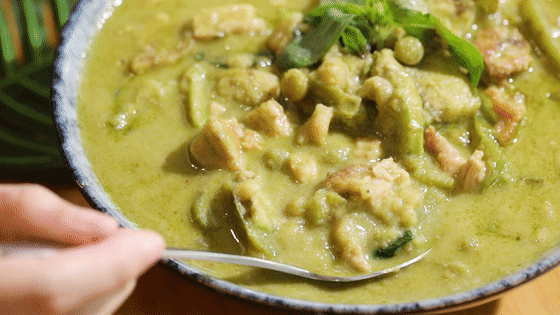 浓郁的椰奶中和了辣椒和南姜的辣度