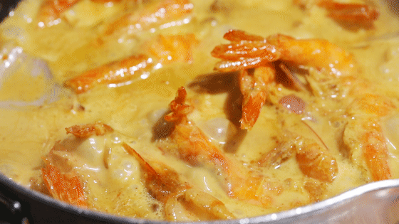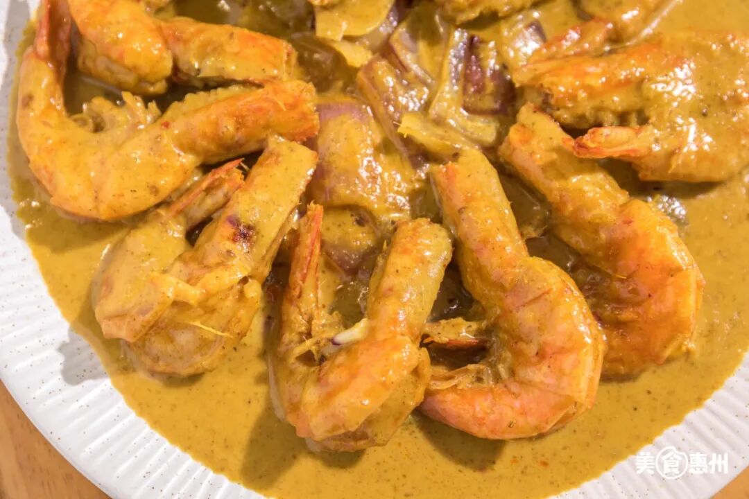 充满椰香的咖喱配上肉质肥嫩的大虾