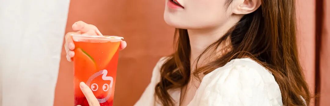 使摇摇冻、果香和茶香充分融合后大口吸入