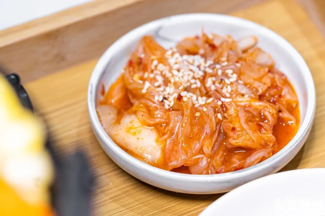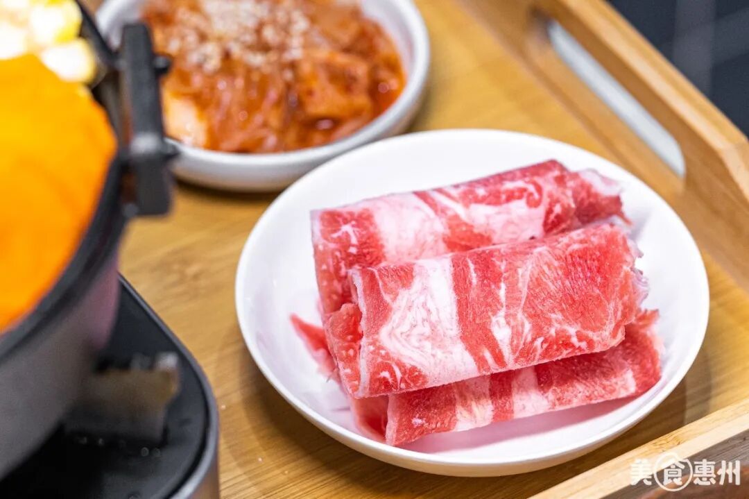 配菜有酸辣可口的泡菜,还有火锅标配——肥牛。
