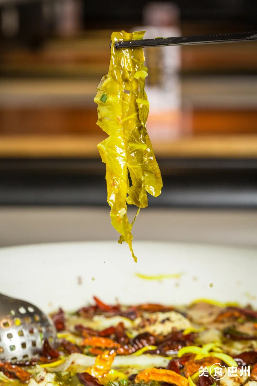 老坛子酸菜鱼的鱼汤,汤底清澈,非常入味