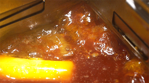 从锅底的表层可以看到自制红油锅底的油会少一些