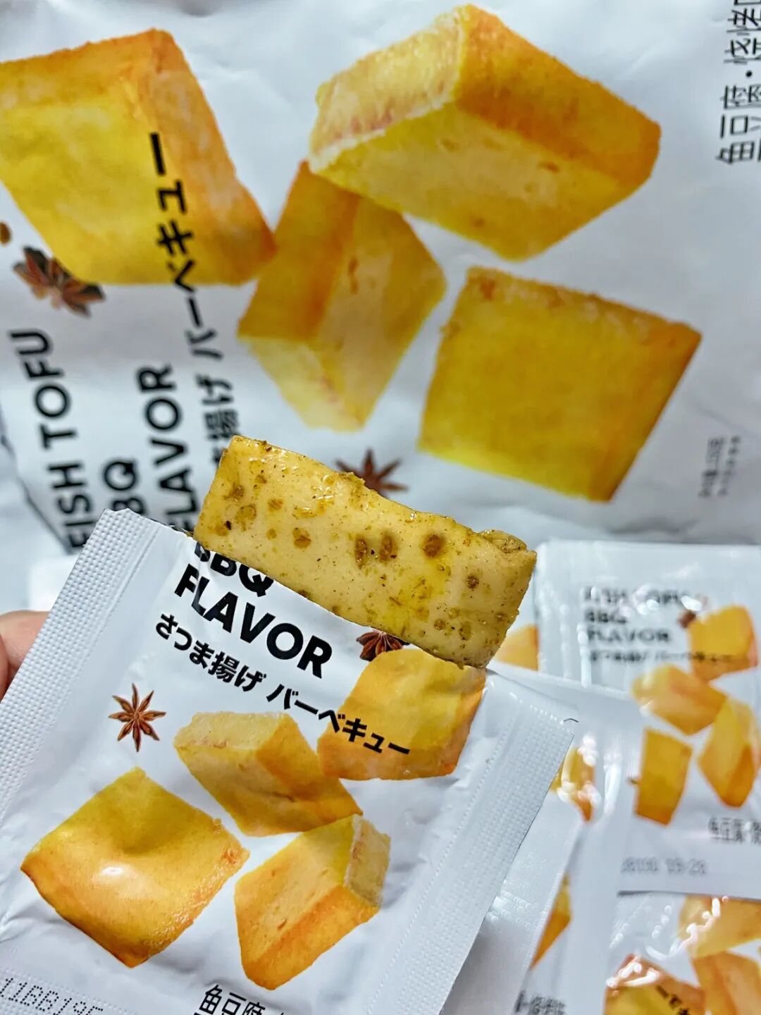 这款鱼豆腐有两个口味:烧烤味&川辣味。即便是川辣味,不太能吃辣的小吃货也是能接受的。