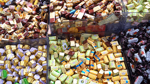 超市里还有琳琅满目的徐福记散装糖果和巧克力