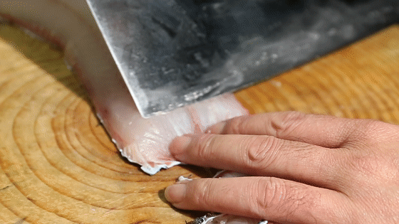 厨师细心地将每一片鱼肉保证在1.5毫米左右