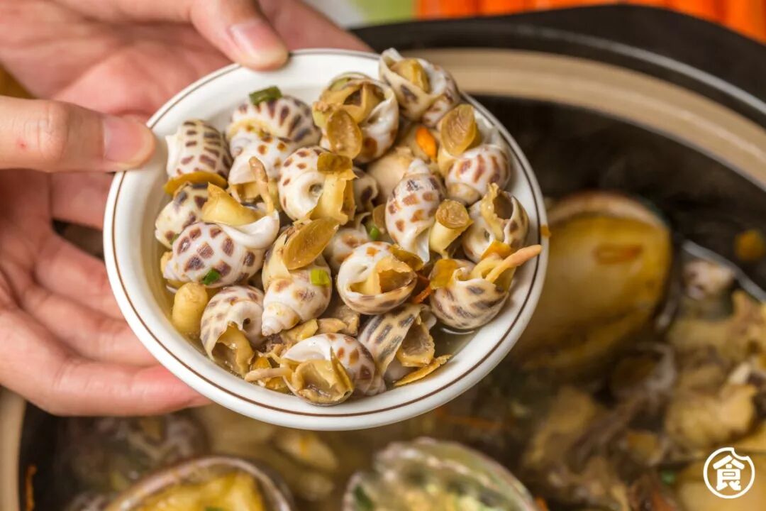充满鲜味的花螺,在清甜高汤的洗礼下汤汁慢慢浸透在螺肉里,咬在口中是嘎吱嘎吱的脆爽。