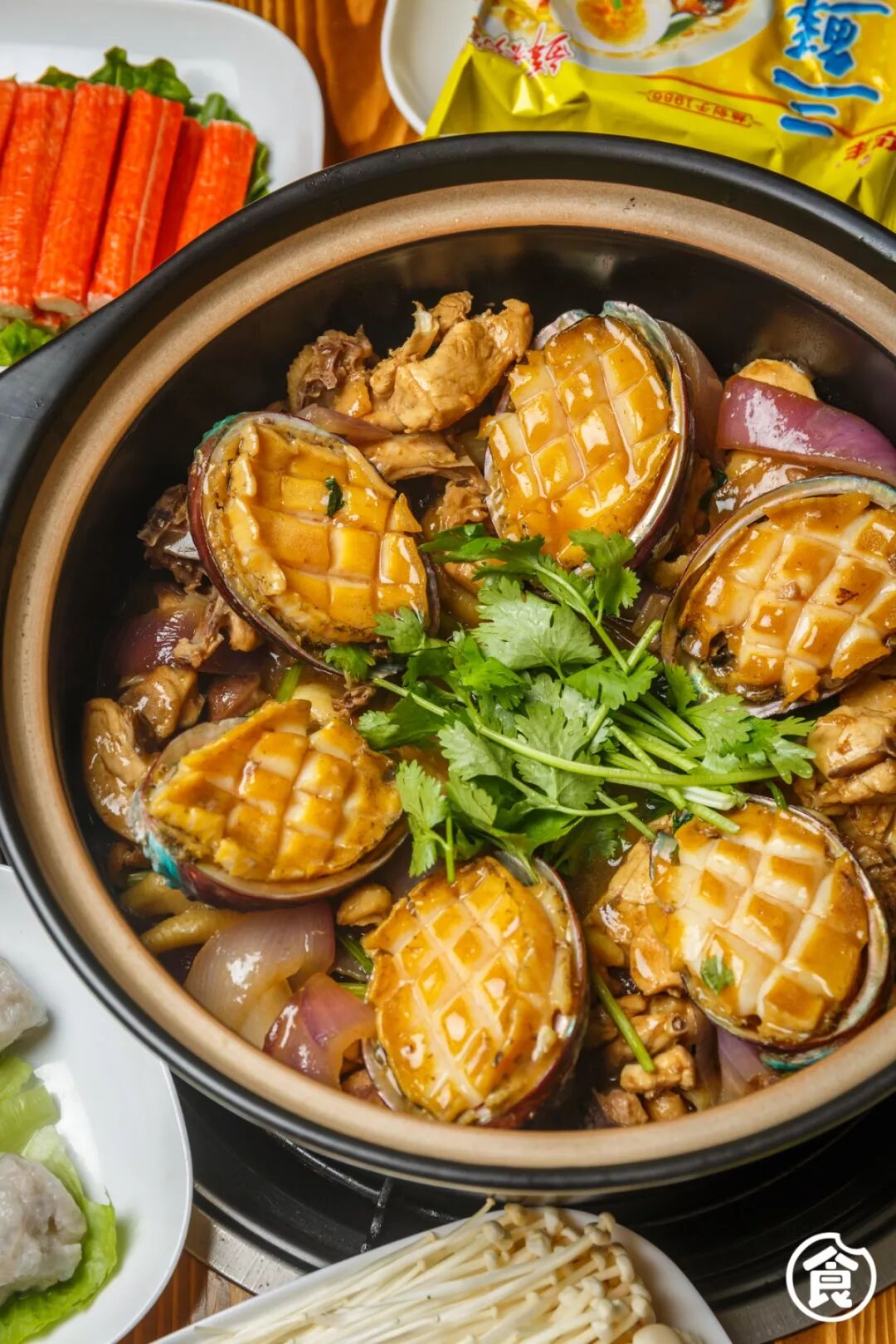 吉品·鲍鱼鸡这锅月销2000+煲的招牌「鲍鱼花螺鸡煲」,真的有着超治愈人胃的能力,鲍鱼只只硕大肥厚,肉质饱满又弹牙爽口,一次吃5个都不够喉!