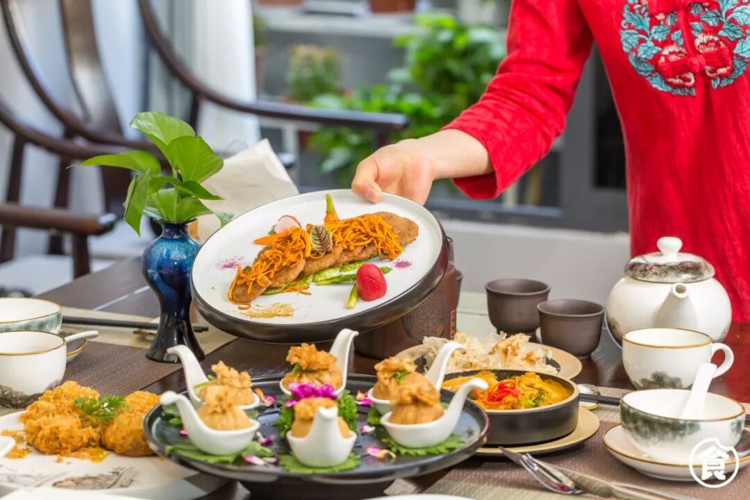 在每一道素食菜肴上展现出来