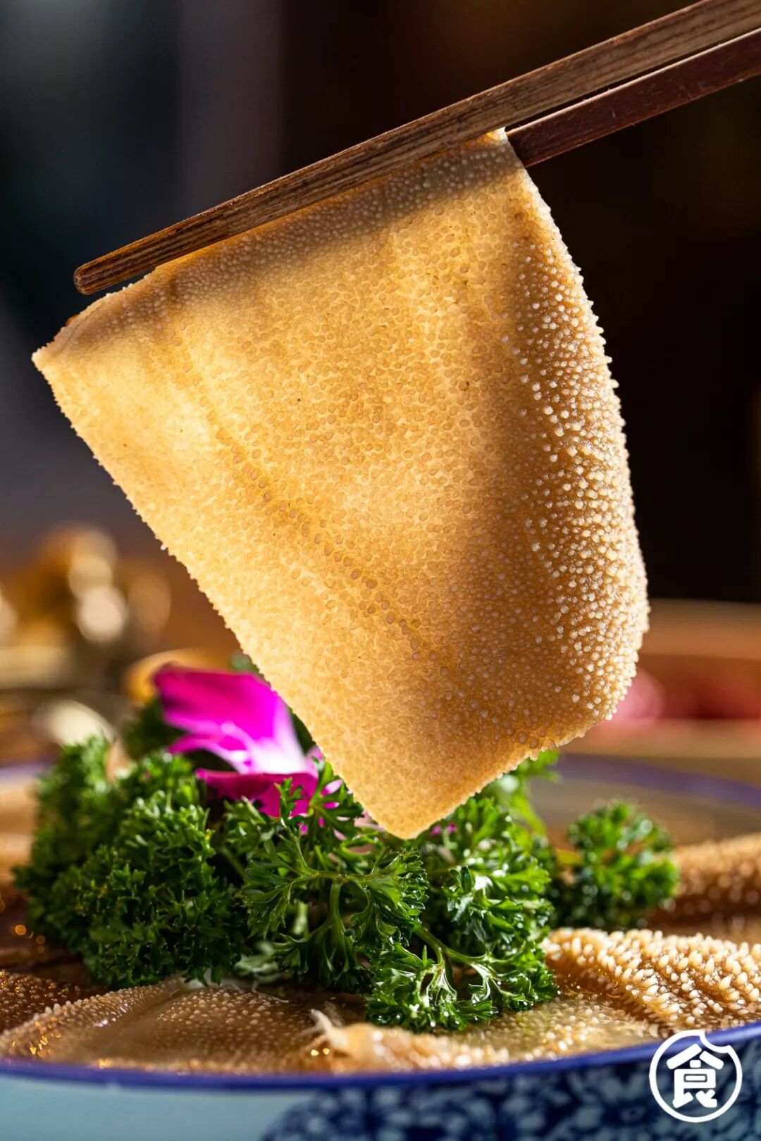 一片超级大,看起来比脸还要大片,但是被片的很薄,才能很快地涮熟入味。