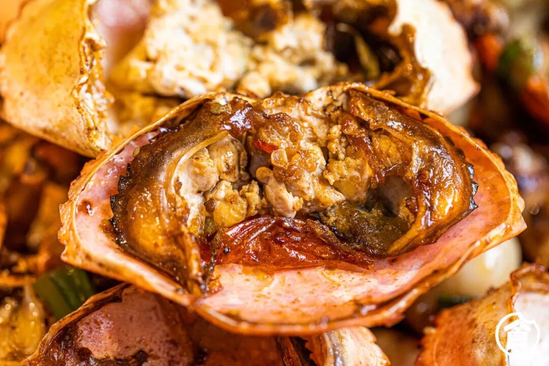 迷宗蟹是这家店的招牌,“缅甸蟹”,蟹壳黑青蟹钳发红,以壳薄肉厚著称,同时拥有河蟹的细腻和海蟹的鲜美。