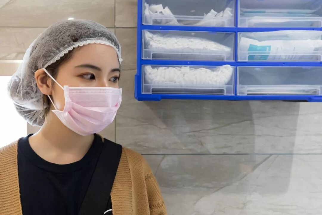 吃之前还可以消毒参观制作过程,进厨房前先戴好头套和口罩,才能保证整个环境和菜品的卫生质量。