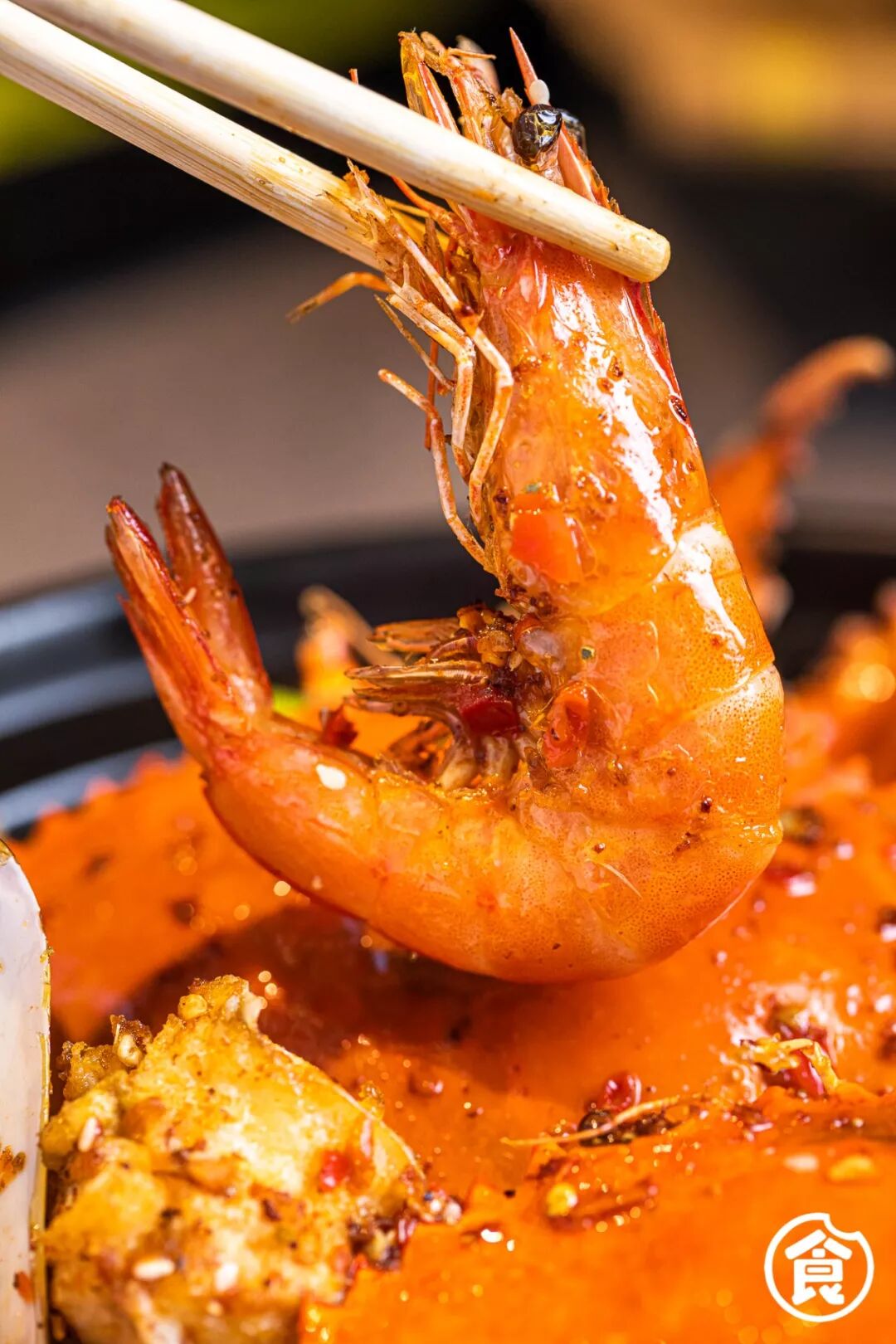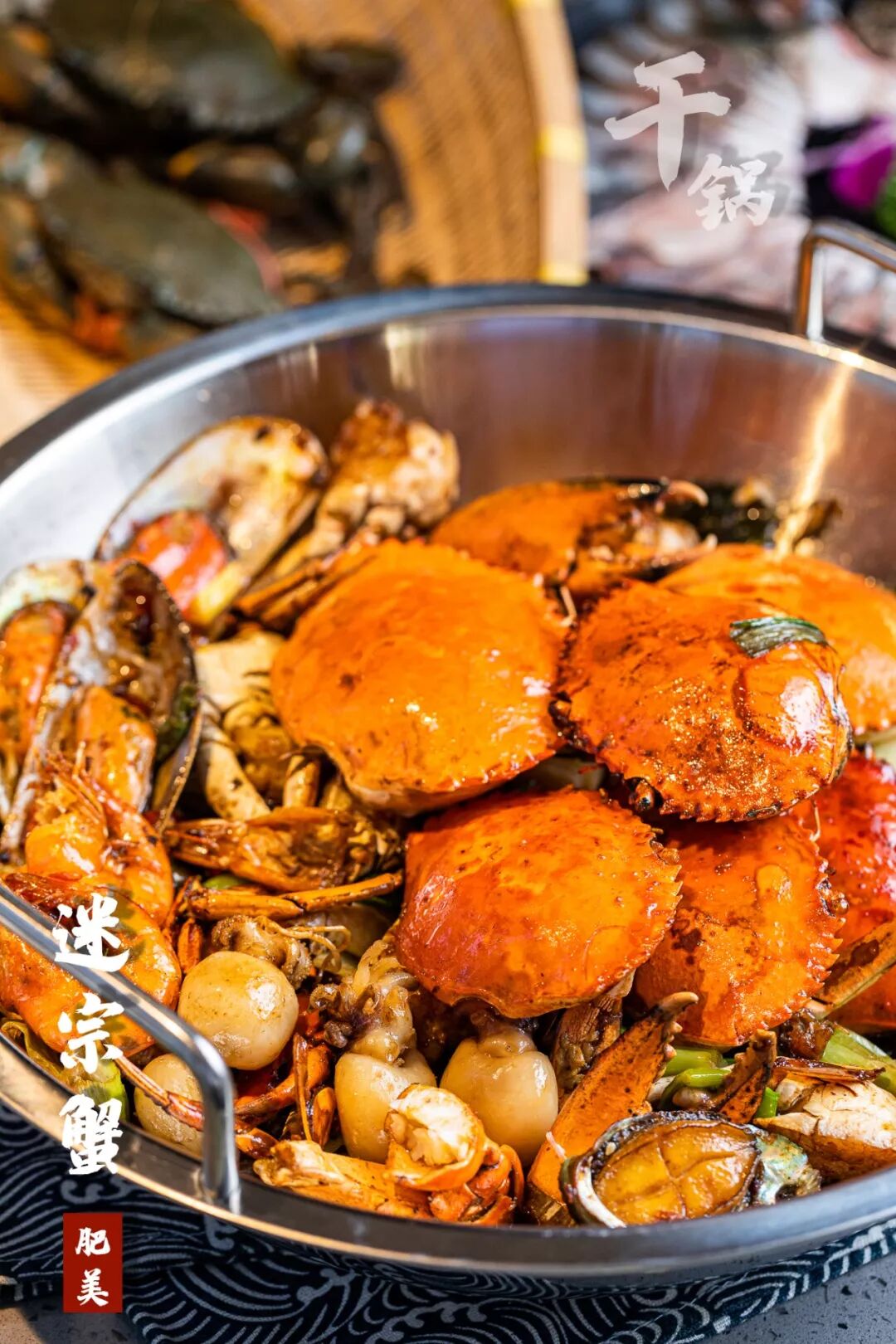 迷宗蟹的标准吃法:一锅两吃,先吃爆炒了的干锅蟹,吃完蟹再加汤,用蟹油的精华来吊汤涮肉。