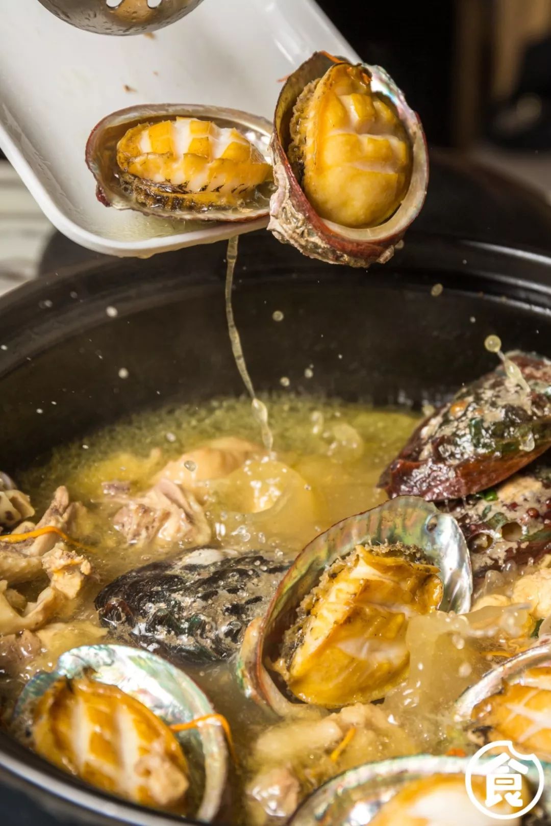 首推招牌<花螺鲍鱼鸡>,开花口的鲍鱼吸饱了鸡汁的精华,还给鸡肉附赠了鲜美的鲍香,花螺的加入让这个鸡煲变得更鲜甜了。