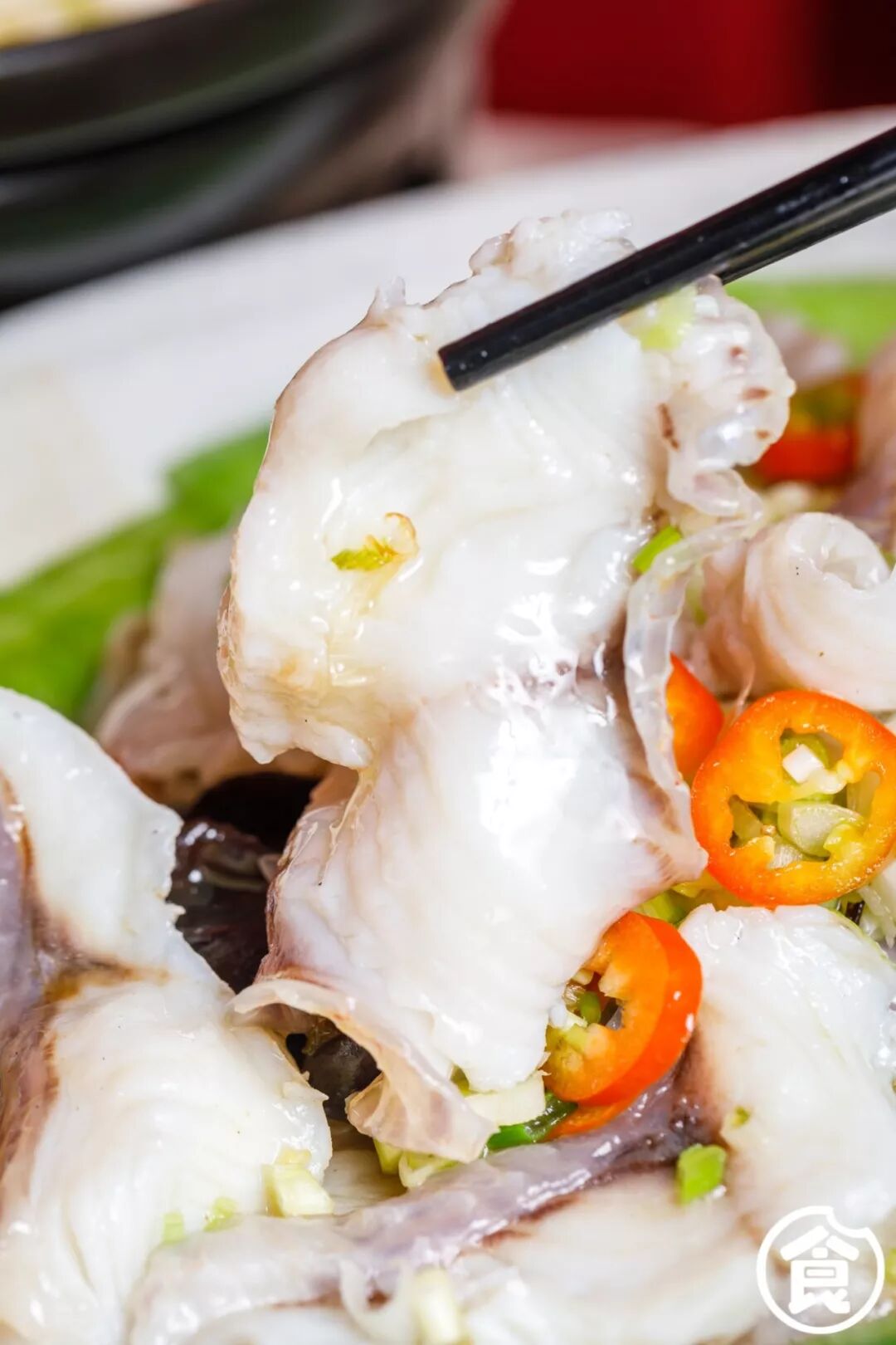 嫩滑的鱼肉蘸取底部的酱汁更鲜美
