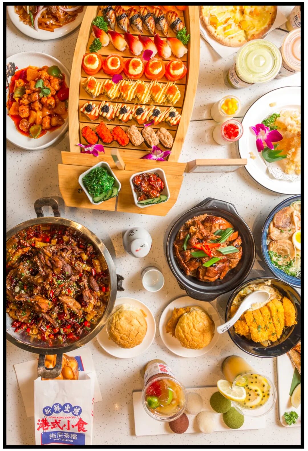 大闸蟹、奶黄包、凤爪、排骨、拉面、猪扒饭