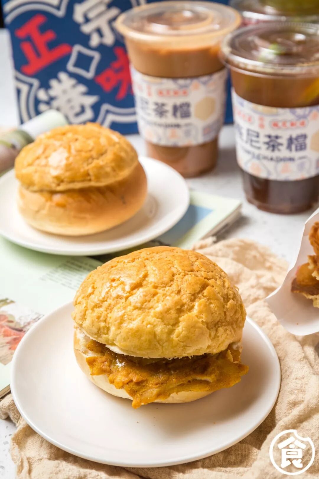 酥到掉渣的菠萝包夹着香浓的咖喱猪扒