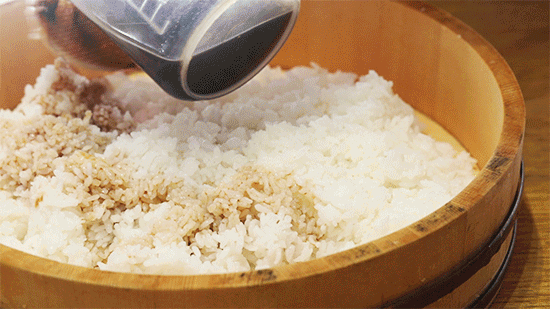打至浅褐色的寿司醋饭,可以在搭配刺身的食用上