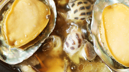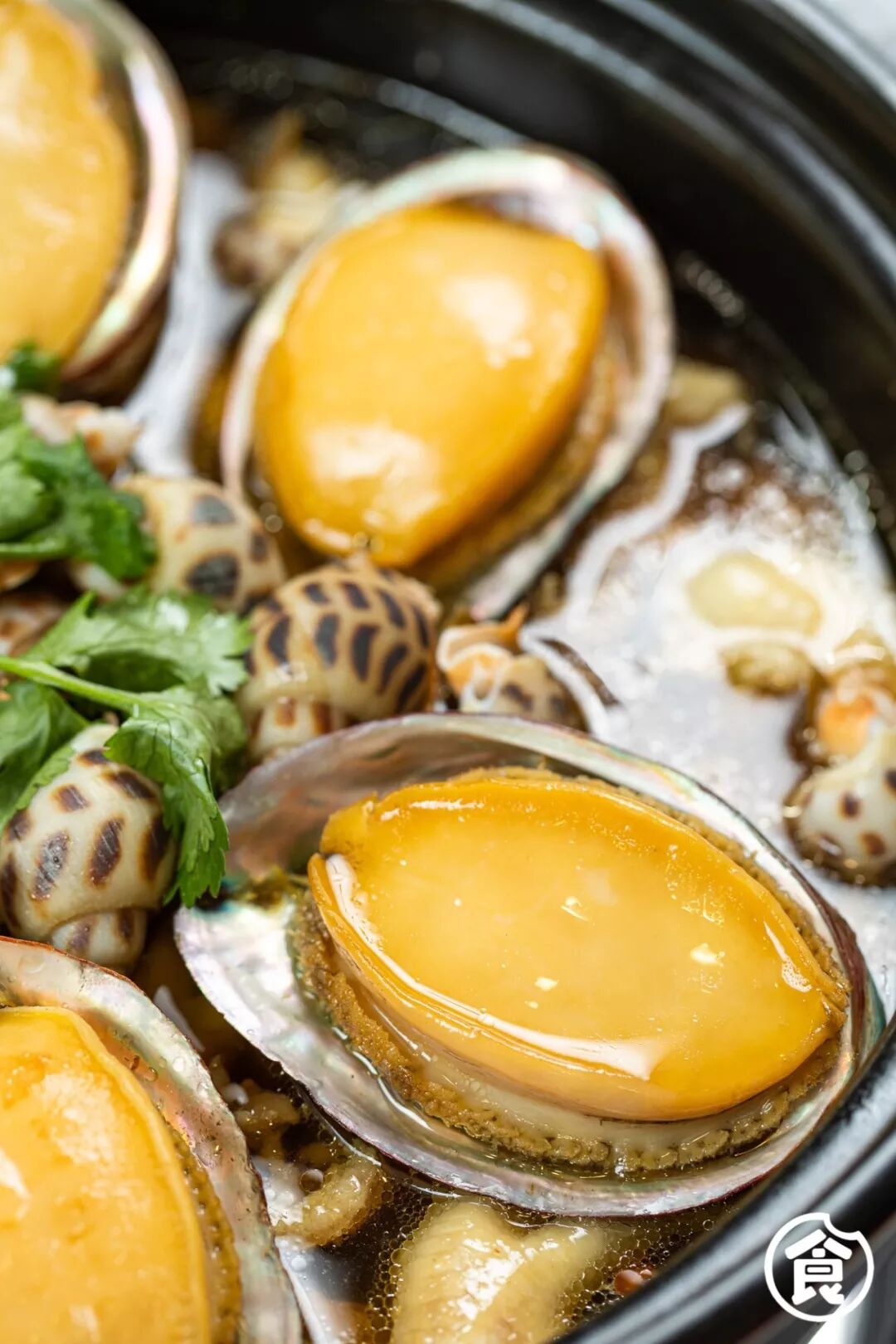 想吃几个可以任性点,每人最少两个才够满足,占据鸡煲C位的当属这拳头大的鲍鱼啦!