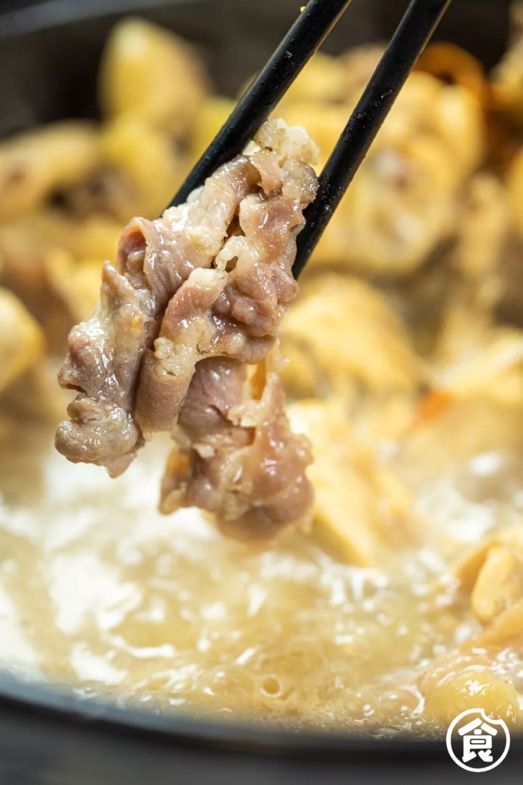 一整锅满满的海参,吃完比敷10片面膜还滋润,用筷子拨开层叠的海参,就能看见底下咕噜沸腾的鸡肉了!