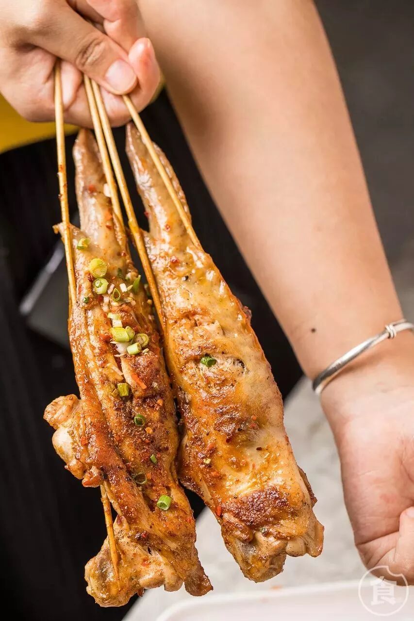 烤鸡全翅,超大只鸡翅被火力渗透,水分消散,在热火里烤得鸡皮酥脆,沾染上特殊的孜然香,是记到骨子里的香酥。