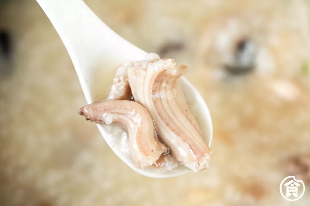经过粥水的洗礼,蛇肉油而不腻,紧致嫩滑,油香中透出鲜甜。鸡肉吃起来肉质非常Q弹爽口,有嚼劲。一口下去,鲜甜的粥水在齿间游离,浓郁的鲜甜味随着汁水顺滑入喉。