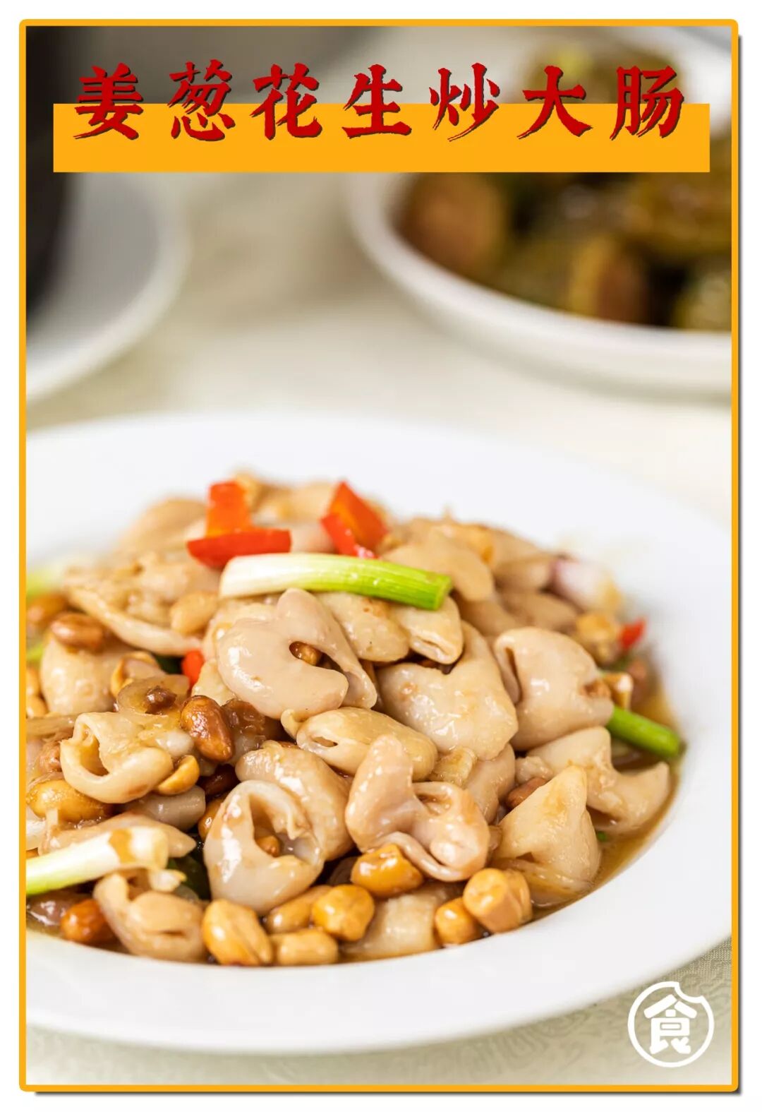 非常简单、客家的做法,在和姜葱爆炒中,韧性十足的猪大肠表皮微焦。