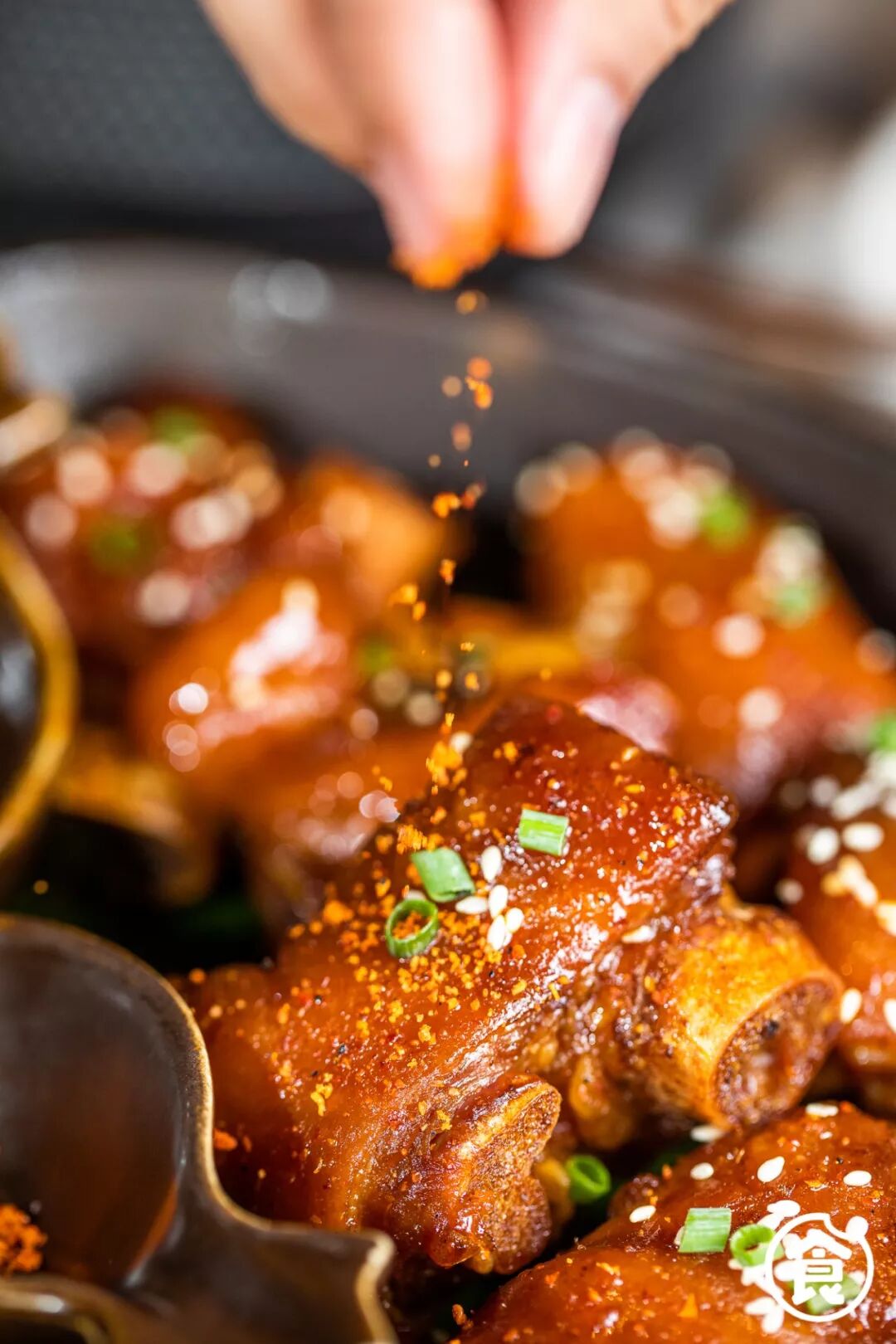 猪蹄还有两种吃法,蘸秘制酱料或干碟,干碟会有点点微辣,但是带点辣的猪蹄更讨人喜欢。