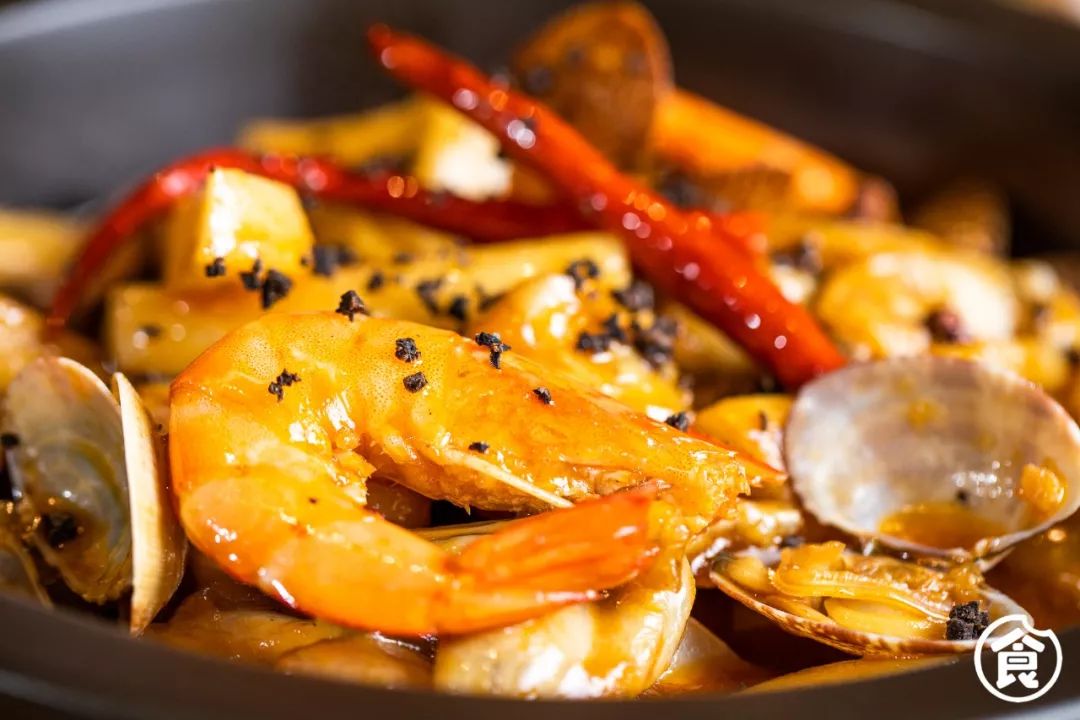 来自云南山林的牛肝菌和黑松露完美结合,香气迷人,锅底还藏有硕大结实的蛙肉和各种小海鲜,一锅里面可大有乾坤。
