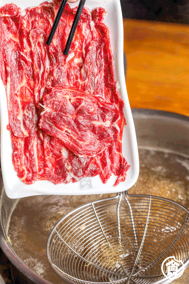 锅底沸腾牛肉倒入