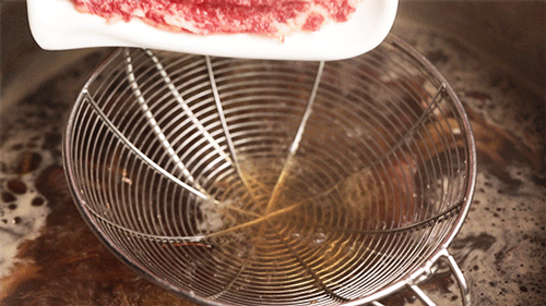 整盘匙仁倒入漏勺狂涮